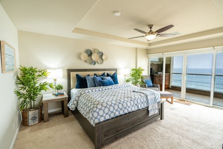 La recámara principal frente al mar cuenta con walk-in closet y baño completo privado con lavabos dobles, tina de hidromasaje y regadera independiente. La segunda recámara es luminosa y cómoda, junto a un segundo baño completo con regadera tipo cabina.